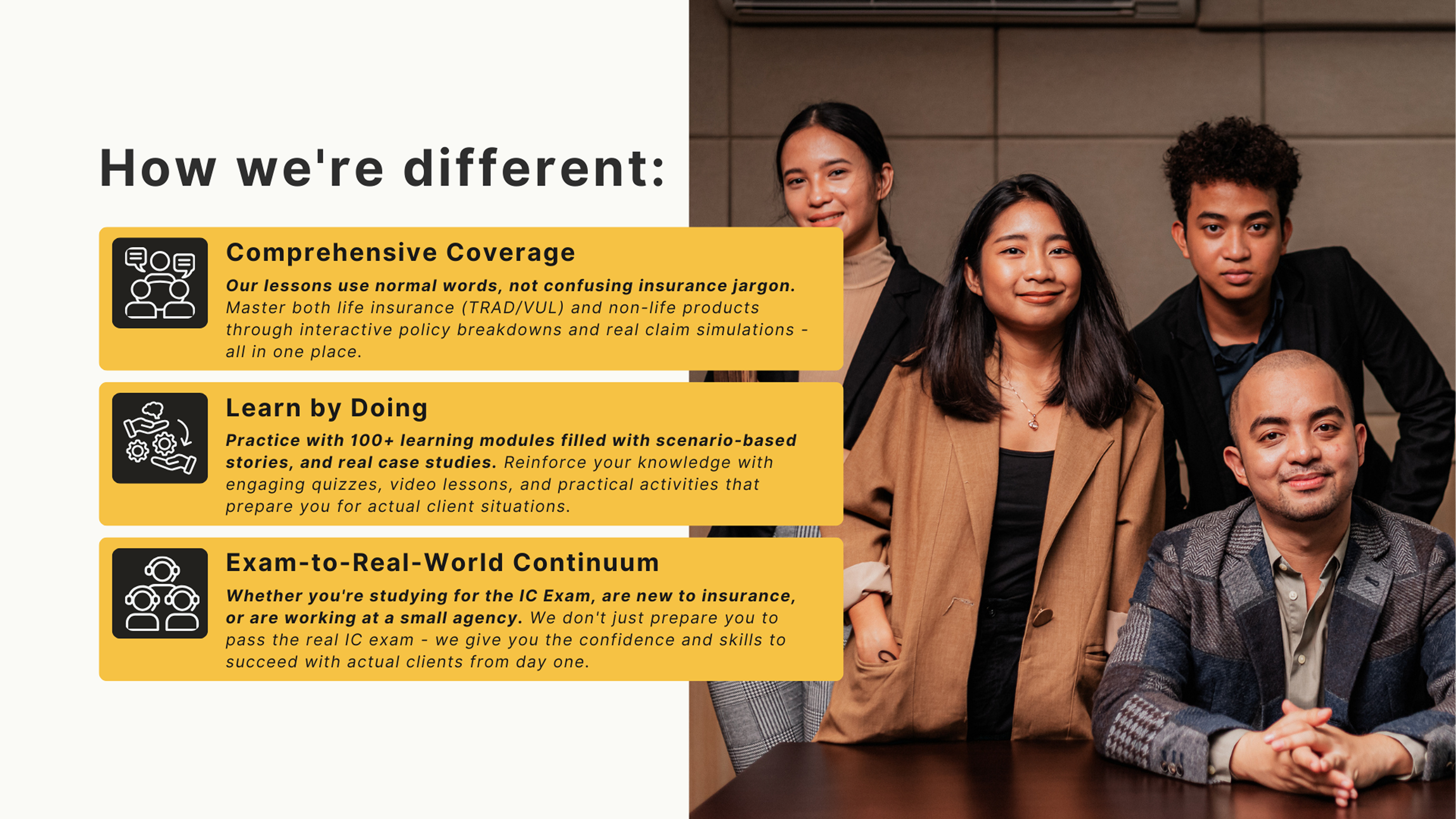 We're here to help aspiring financial advisors in the Philippines pass the Insurance Commission Licensure Exam with confidence— through practical, expertly designed training.